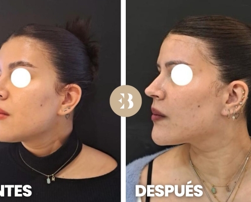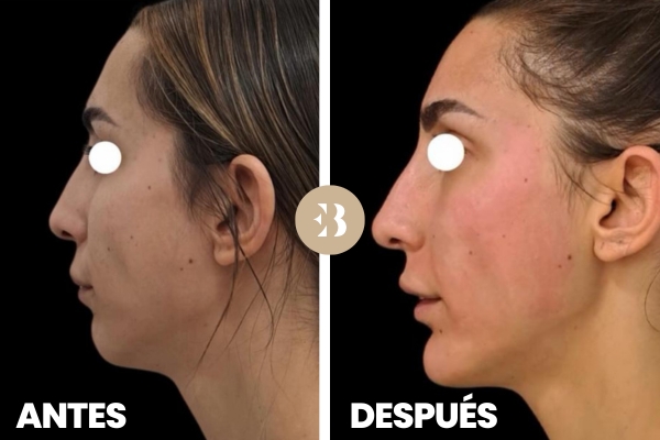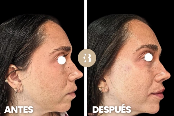 Sofía vino a Clínicas EB para realizarse una rinomodelación sin cirugía y una proyección de mentón, ambas realizadas con Ácido Hialurónico