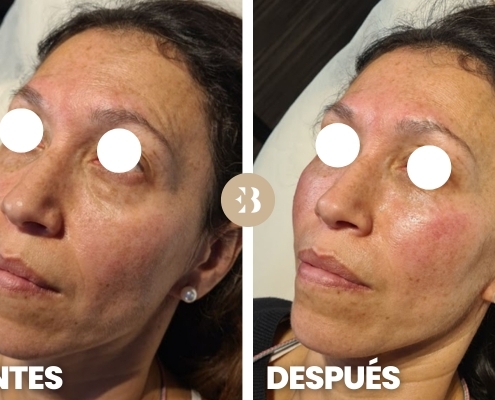 Nuestra paciente decidió renovar su piel con un tratamiento de láser para eliminar esas pequeñas marcas, logrando: suavizar las imperfecciones de la piel, unificar el tono y la textura y mejorar la luminosidad y el aspecto general del rostro.